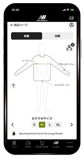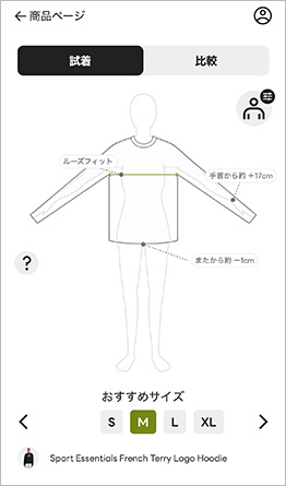 アパレルの最適なサイズがわかるオンライン試着をサポート。