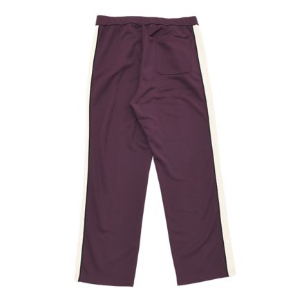 スポーツアイテムからライフスタイルアイテムへとブラッシュアップされたジャージーパンツ。スポーツアイテムにはない落ち着いた配色に加え、サイドに施されたテープとブライドコードやセンターに入ったプリーツなどの装飾が、スポーツアイテムをライフスタイルアイテムへと変貌させます。上品なスポーツミックスコーディネートにおすすめの一枚です。同素材のジャケットとセットアップでのスタイリングも可能です。